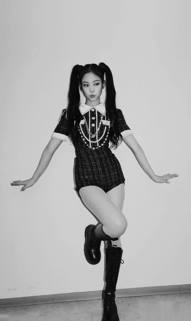 黑色的服装搭配了一双黑色的中筒靴,显得肌肤很白皙,而且一双大长腿特别明显,成熟又性感,同时又展现出她的俏皮与可爱。果然长得好看就是任性,看金智妮这一次的打扮,可萌可酷,真心好看。